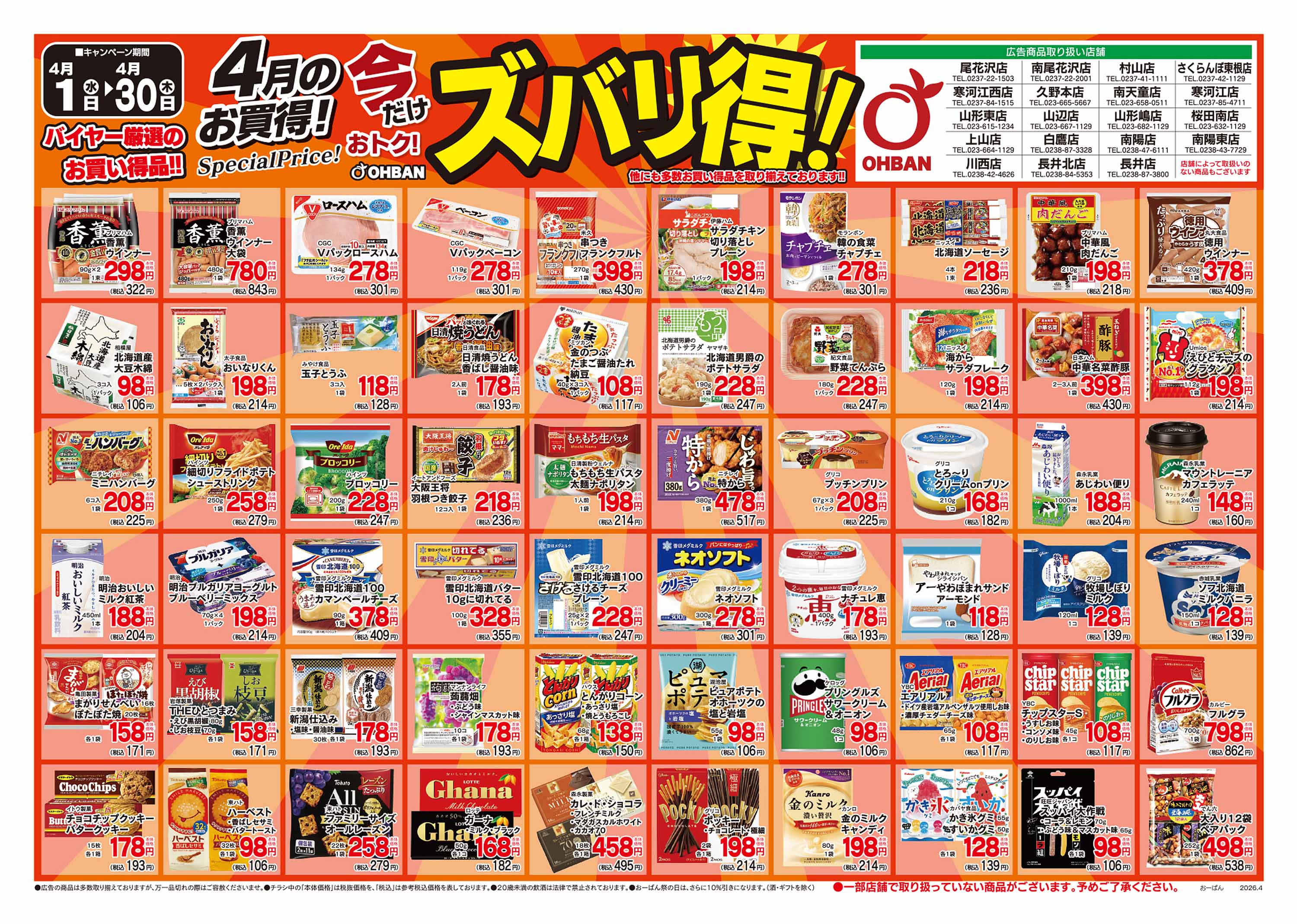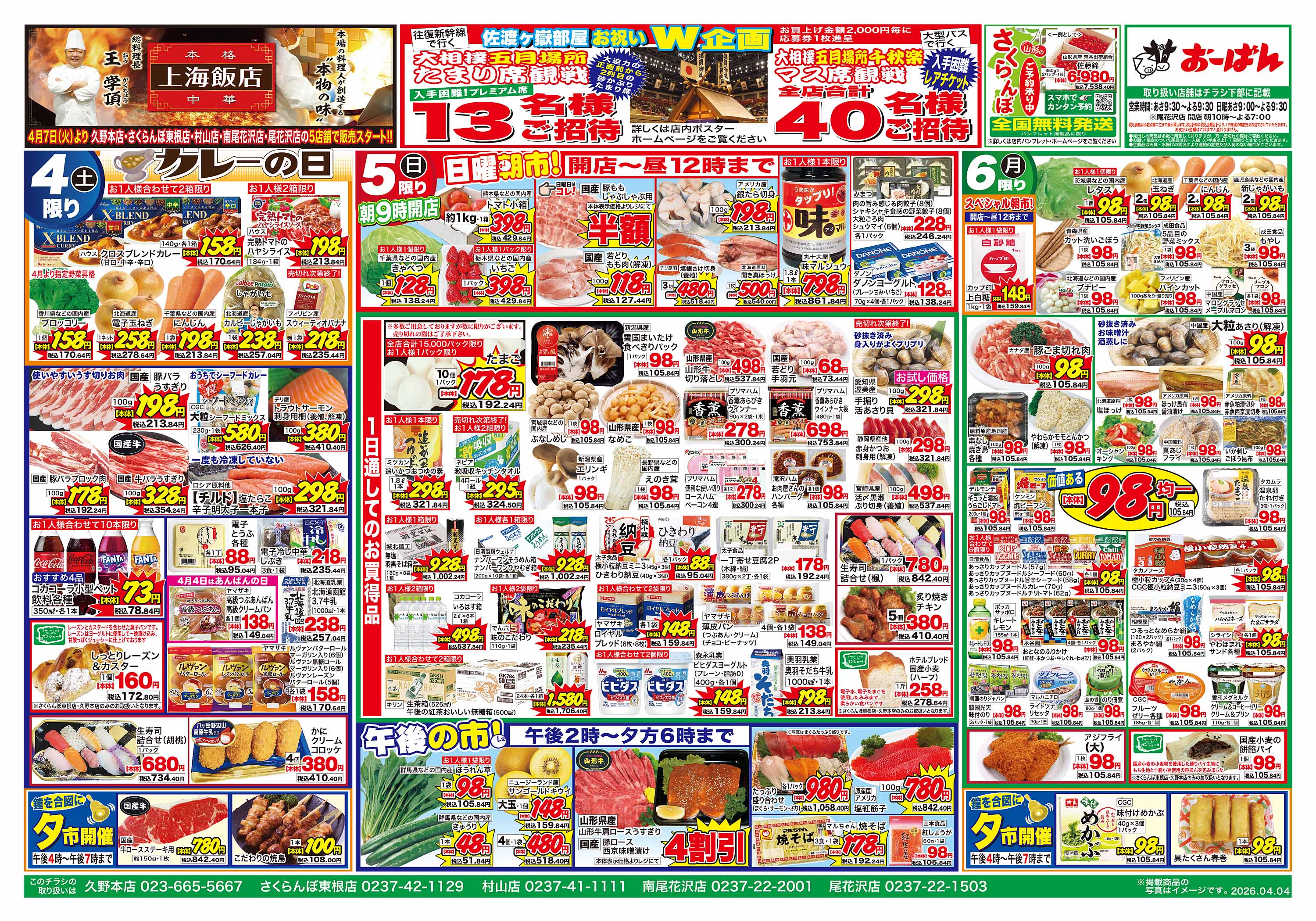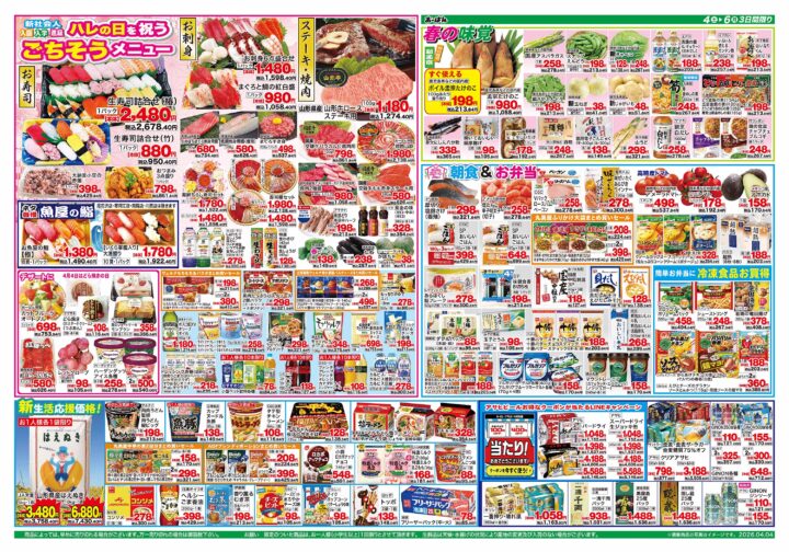 (久野本店・さくらんぼ東根店・村山店・南尾花沢店・尾花沢店限定)4月4日~6日のチラシをアップしました!
