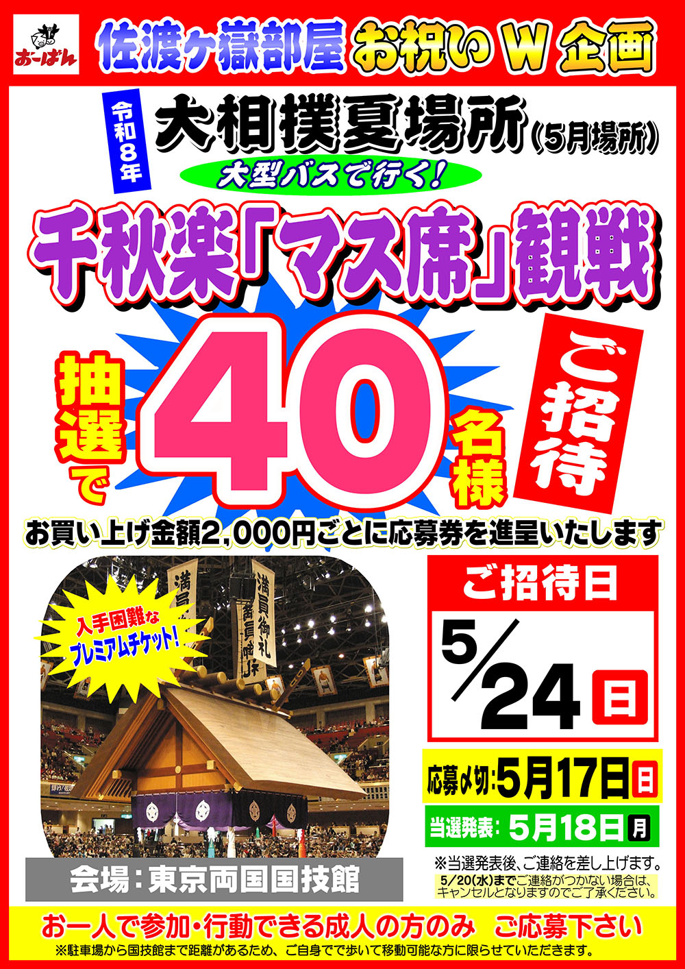 佐渡ケ嶽部屋お祝いW企画 夏場所千秋楽マス席ご招待!